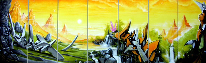 fresque tableau de 700x180cm réalisé avec kesh (www.kesh.ch)pour le centre professionnel des métiers du bâtiment Colombier (NE)