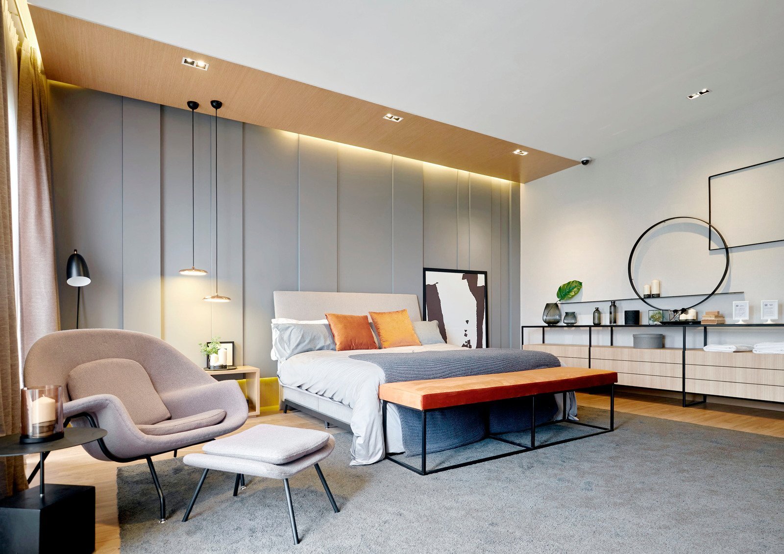 https://mazzani.pl/projektowanie-wnetrz/ Witajcie w mojej najnowszej aranżacji - nowoczesnej sypialni, która emanuje spokojem i elegancją. Gładkie, białe ściany odbijają delikatne światło wpadające przez panoramiczne okno, tworząc wrażenie przestrzeni i lekkości. Łóżko z minimalistycznym, czarnym stelażem i miękką, szarą pościelą stanowi centralny punkt tego wnętrza. Obok niego znajdują się designerskie lampki nocne, które delikatnie rozświetlają przestrzeń, tworząc atmosferę relaksu i komfo