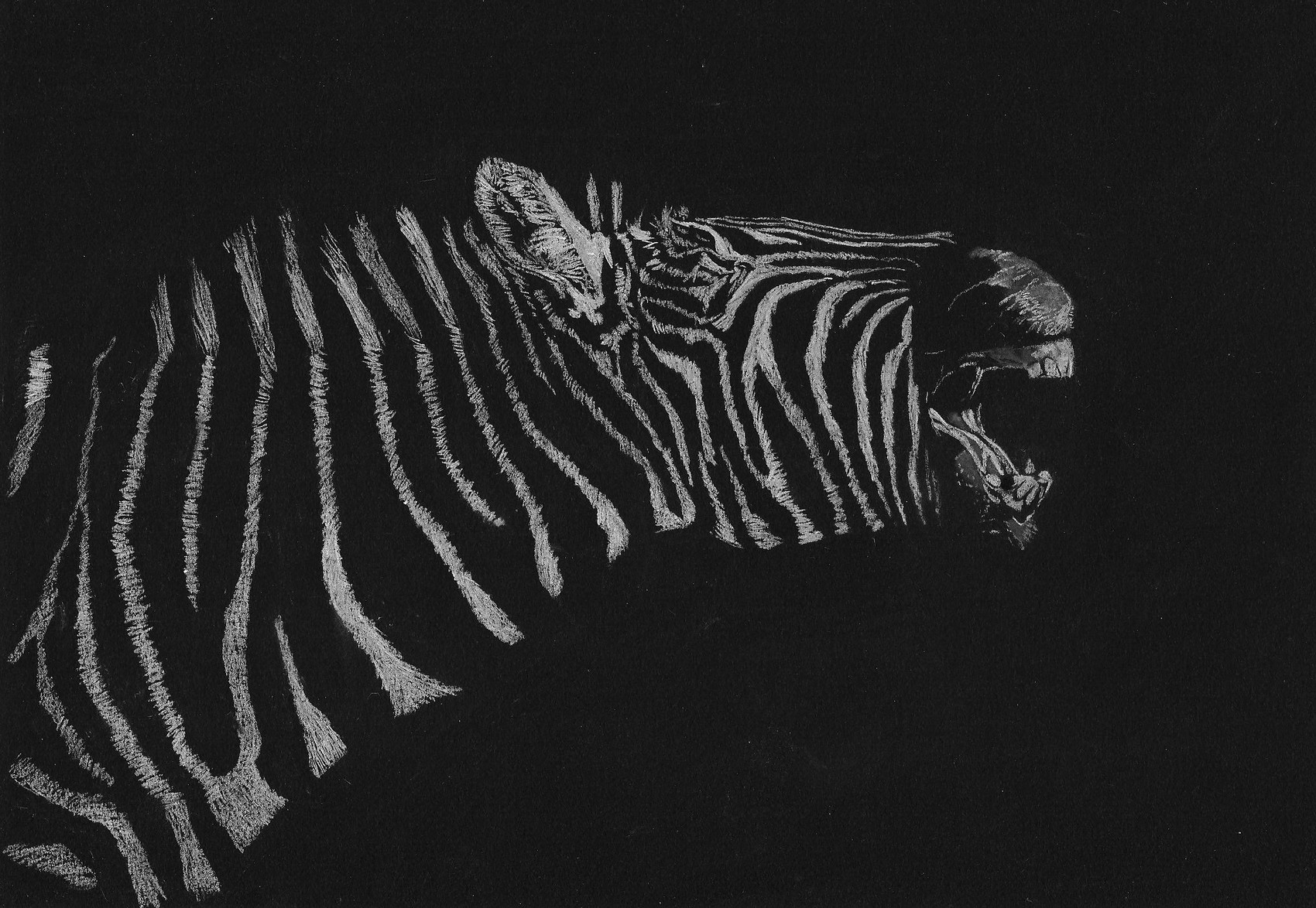 Jouons avec le noir...attention à ne pas finir comme Pierre Soulages (quoique...) Non, tu as bien fait de conserver ses rayures blanches à ton magnifique zèbre...! Prochaine toile..."Moby Dick" sur fond blanc?