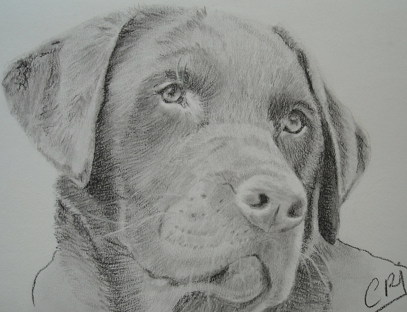 Portrait animalier exécuté sur papier dessin blanc format A4. Technique: crayon de papier + fusain+ pastel blanc