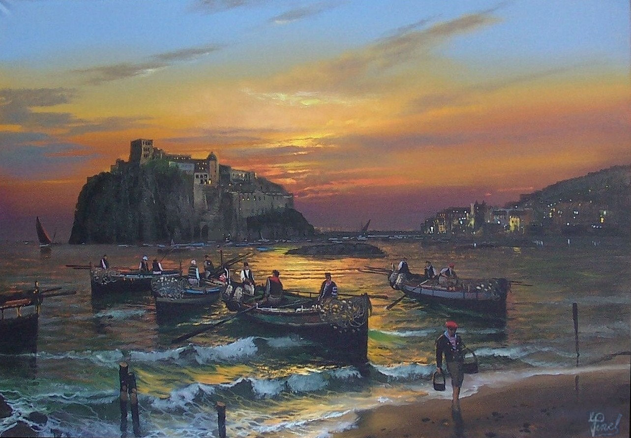 Retour de pêche sur l'île d'ischia fin 19 ème