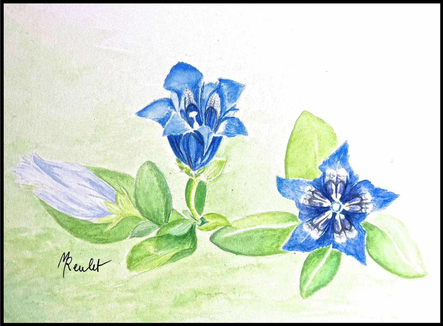 La gentiane acaule / Painting : a gentian without stalle (Gentiana acaulis)