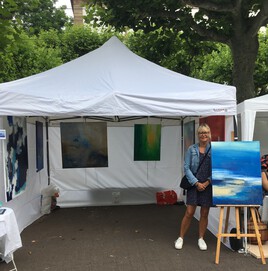 Depuis 20 ans je me consacre plus particulièrement à la peinture en perfectionnant ma technique au gré des Surfaces. J'ai travaillé cette collection de toiles autour de la couleur bleue en pensant à la formule de Paul Éluard, la terre est bleue comme une orange.
